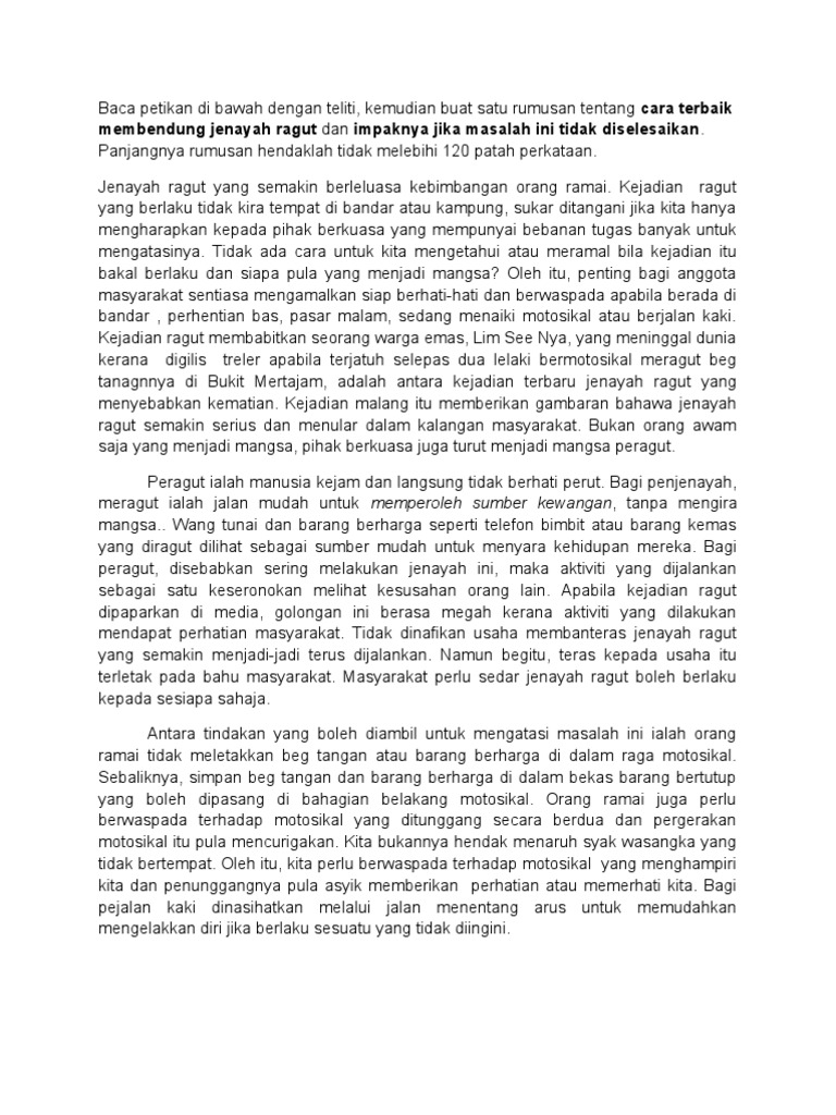 Jenayah Ragut Karangan A F5 Pdf