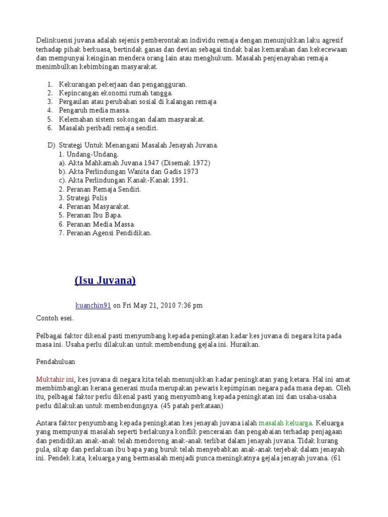 NUR NABIHAH BINTI NORIZAL 135765 Disediakan kepada. Beliau juga memaklumkan hasil siasatan mendapati remaja seawal usia 12 tahun telah mula terjebak dengan. Jenayah juvana merujuk kepada perlakuan jenayah atau anti-sosial golongan juvenil remaja.
