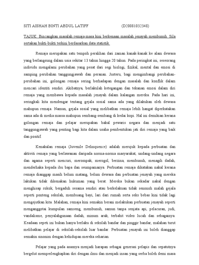Masalah Jenayah Di Kalangan Remaja Pdf