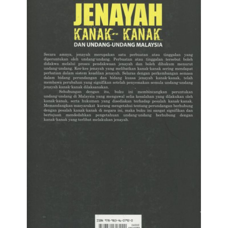 Jenayah kanak-kanak dan undang-undang malaysia. FAKTOR JENAYAH KANAK-KANAK TEORI jenayah yang dilakukan untuk memuaskan dirinya walaupun secara sedar dia tahu akan akibat dan hukuman yang akan diterima sekiranya disabit salah. Terima mana-mana jawapan yang munasabah MS 168. Jenayah Kanak-Kanak Dan Undang-Undang Malaysia by Anita binti Abdul Rahim 2014 Dewan Bahasa dan Pustaka Malaysia edition Trade Book in Malay.