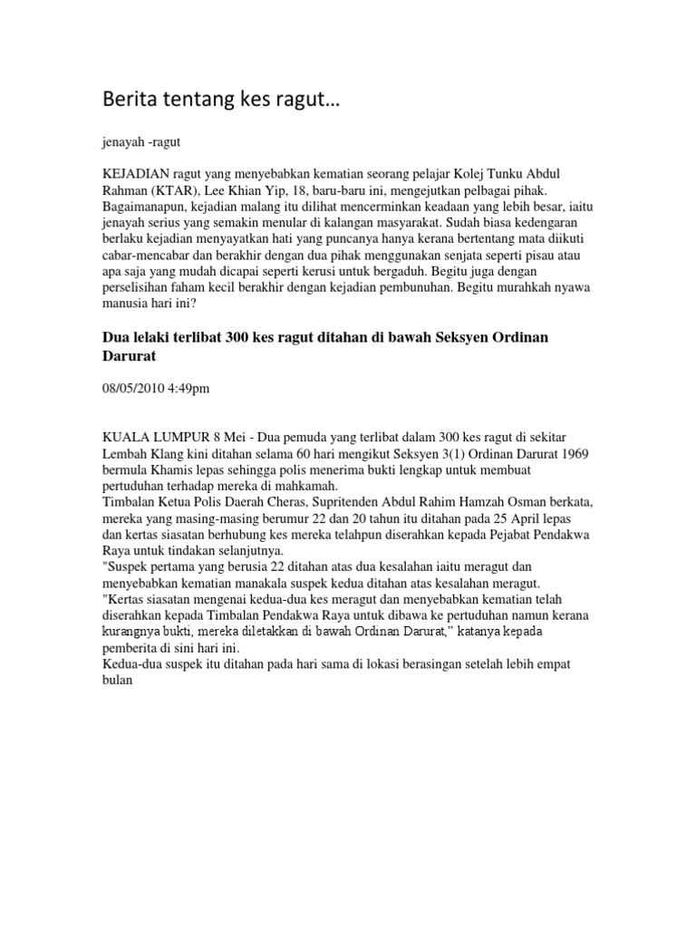Berita Dan Punca Kes Ragut Pdf
