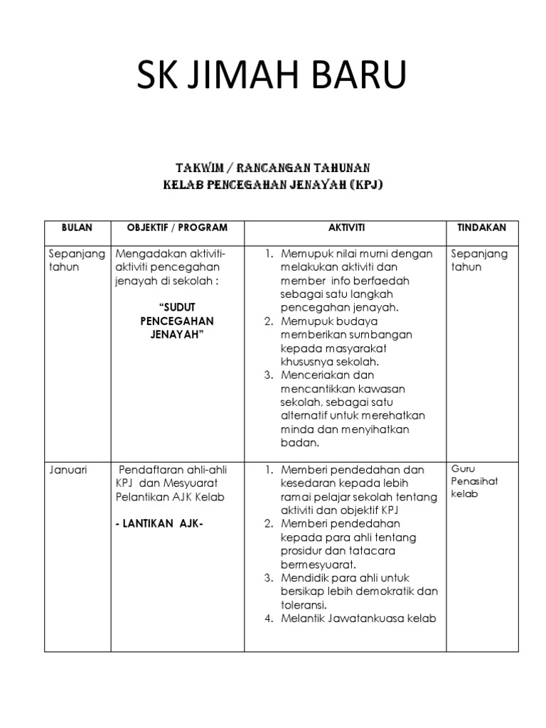 Rancangan Tahunan Kelab Pencegahan Jenayah Pdf
