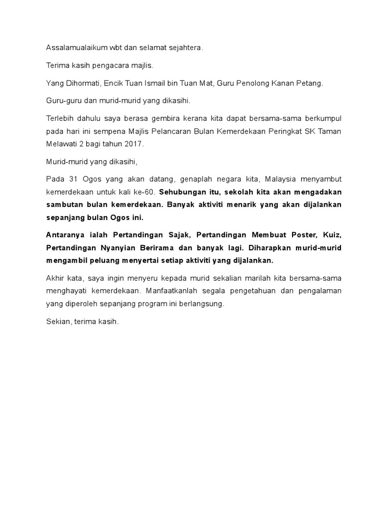 Teks Ucapan Perasmian Sambutan Bulan Kemerdekaan Ke61 Pdf