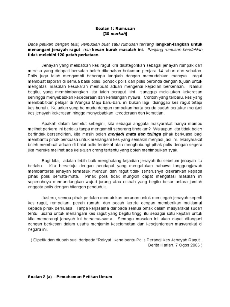 Pastinya kesan mendalam akibat di ragut sedikit sebanyak member kesan jangka panjang kepada mangsa tersebut. Kesan-kesan yang akan Dihadapi oleh Masyarakat Jika Usaha Membanteras Jenayah Tidak Ditangani Dengan Segera Jenayah ditakrifkan sebagai satu perbuatan yang membawa kepada kerosakan dan kemudaratan kepada masyarakat kita seperti perbuatan mencuri merompak membunuh dan rasuah. Jenayah ragut juga penyumbang kepada berlakunya peningkatan jenayah di Malaysia.